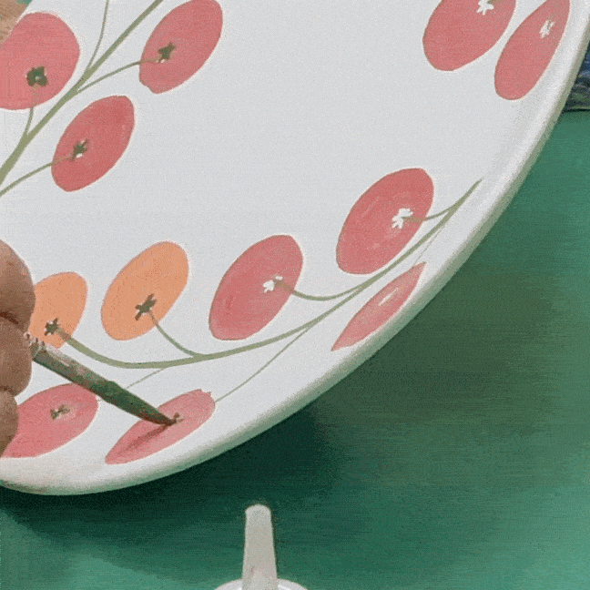 Casting and Hand-painting : the plates are made out of stoneware and casted into individual clay moulds. After their first firing, they are all individually hand-painted before getting their final glaze.