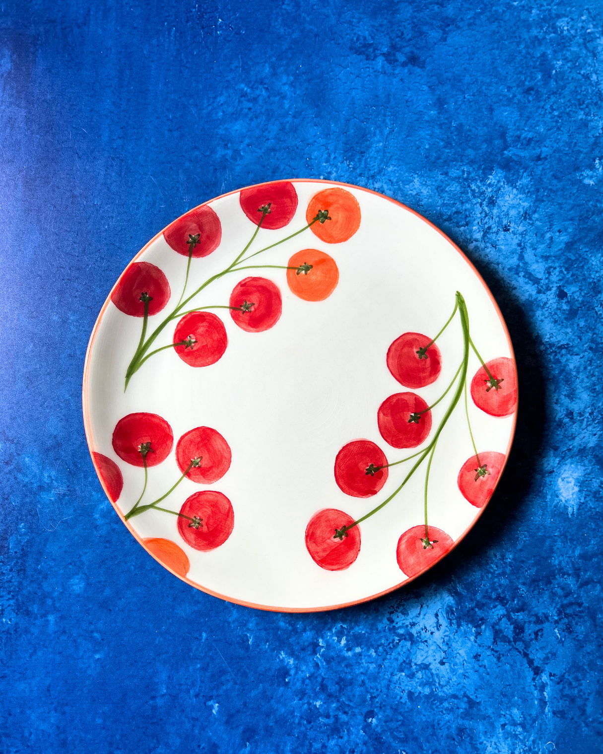 Part of our brand-new Tomato Collection, inspired by the best-selling Tomato Pasta Bowls, this Large Tomato Plate makes a bold statement on your table. Featuring a striking, spread-out tomato design and framed by a warm orange rim, it’s perfect for main courses, sharing platters, or even as a decorative centerpiece. Each piece is hand-painted in Portugal, ensuring that no two plates are exactly alike.